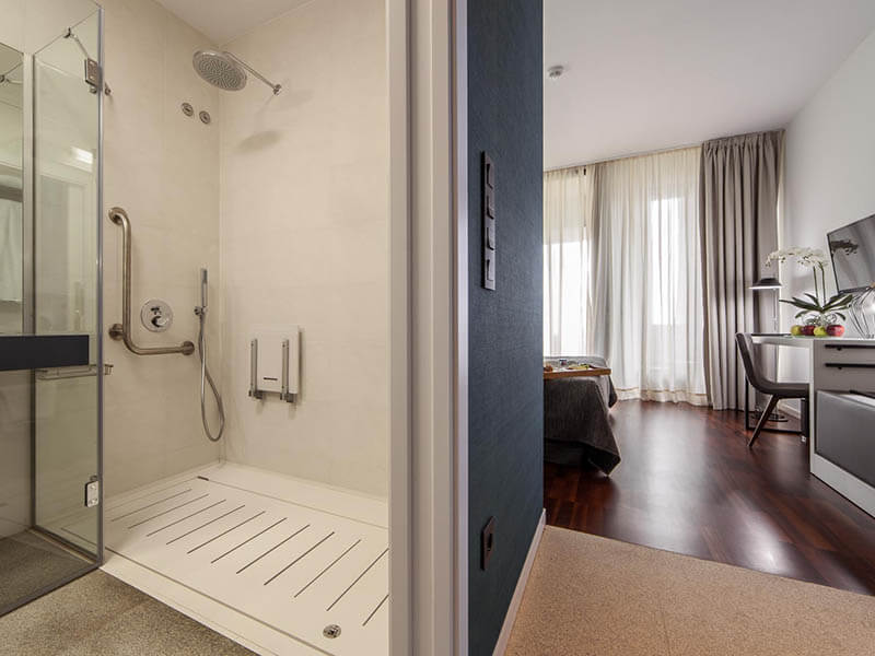 HABITACIÓN ADAPTADA Disponemos de habitaciones adaptadas para personas con movilidad reducida, tanto de uso individual como dobles, sin barreras arquitectónicas.