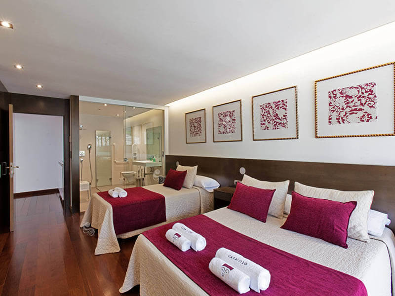 Exterior: acceso a ras de suelo. Interior: accesible en todos sus espacios comunes. Habitación: 1 habitación adaptada con cama de matrimonio o con dos camas de 1,05m, amplia y totalmente accesible.