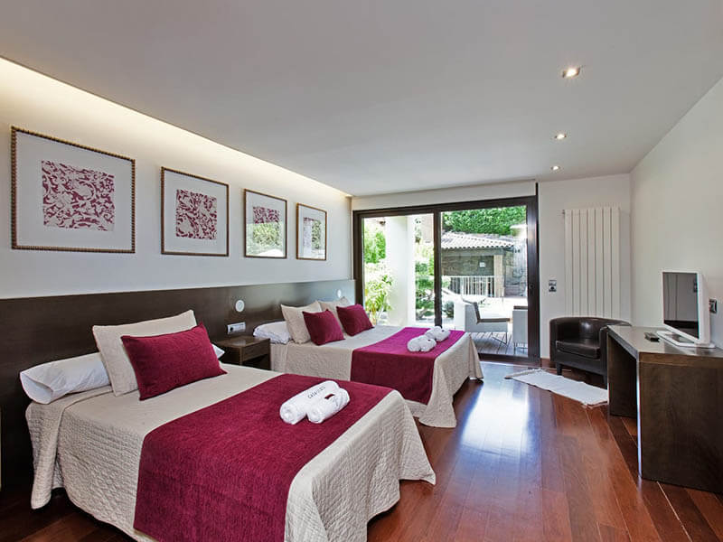 HABITACIÓN ADAPTADA Disponemos de una habitación de 32 m2, amplia y con todo tipo de confort. Equipamiento. TV 32”, Acceso directo al jardín, Cama 1.50 o dos camas de 1,05m, Baño completo y adaptado, con ducha, taburete, combidetta(ducha para inodoro), secador de pelo.
